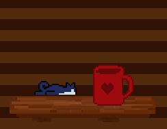 Press SPACE when next to a mug, glass, or urn to knock it off the table.